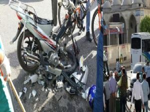 Motosiklet kullanılamaz hale gelirken, araçta hafif maddi hasar meydana geldi.