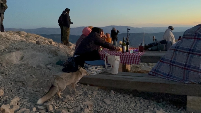 Türkiye’nin dört bir yanından gelen yüzlerce turist, M.Ö. 69 yıllarına uzanan Commagene uygarlığının izlerini taşıyan Nemrut Dağı’nda, devasa heykellerin gölgesinde gün doğumunu izleme fırsatı buldu. Zorlu tırmanışa ve soğuğa rağmen unutulmaz anlar yaşayan ziyaretçiler, tilki yavrusunun da eşlik ettiği bu deneyimi cep telefonlarıyla kaydederek ölümsüzleştirdi.