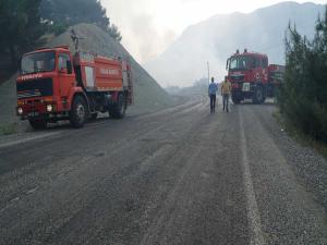 Orman İşletme Müdürlüğü ve itfaiye ekipleri tarafından ormanlık alandaki çıkan yangında soğutma çalışmaları devam ediyor.