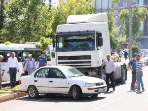 Adıyamanda, TIR ile otomobilin çarpışması sonucu 2 kişi yaralandı.