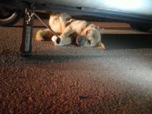 Adıyamanın Kahta ilçesinde otomobilin altında sıkışan köpeği itfaiye ekipleri kurtardı.