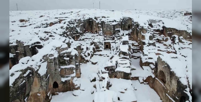 Tarihi dokusu ve doğal güzellikleriyle kentin önemli kültürel mirasları arasında yer alan Perre Antik Kenti, kar örtüsünün altında adeta büyüleyici bir atmosfere kavuştu.