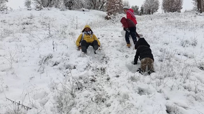 Çocuklar, günlerdir bekledikleri kar yağdığı için çok mutlu olduklarını belirterek, karda kaymanın tadını çıkarttıklarını ifade etti.