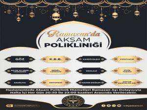 Adıyaman Eğitim ve Araştırma Hastanesi Ramazan ayı dolayısıyla 12 branşta akşam polikliniği hizmeti verecek.