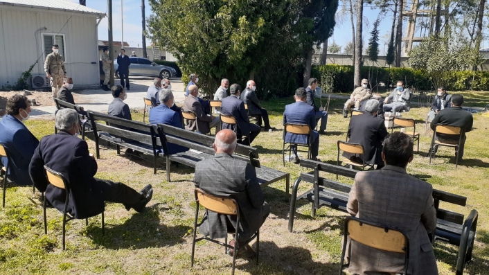 Adıyaman´ın Samsat ilçesinde kurum amirleri ile köy ve mahalle muhtarları toplantısı pandemi nedeni ile açık havada yapıldı.