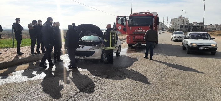Adıyaman´da, seyir halindeyken alev alan otomobil, itfaiye ekiplerinin çalışmaları sonucu söndürüldü.