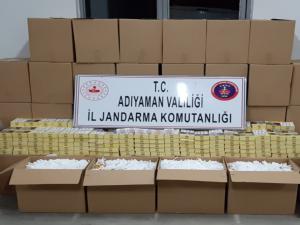 Adıyaman'ın Gölbaşı ilçesinde jandarma tarafından durdurulan otomobilde yapılan aramada 45 koli makaron ile 29 bin paket tütün sarma yaprağı ele geçirildi, 1 kişi gözaltına alındı.