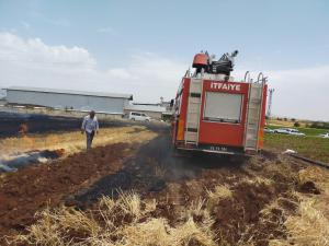Adıyaman'da, tarlada çıkan yangında 100 balya yanarken yangın çevredeki arazilere sıçramadan kontrol altına alındı.