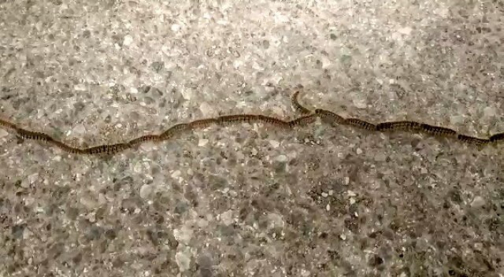 Yaklaşık 40 adet tırtılın sıralı bir şekilde dizildiğini görenler şaşkınlıklarını gizleyemedi.