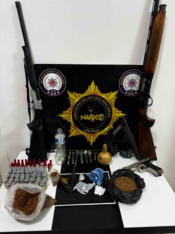 Adıyamanın Gölbaşı ilçesinde düzenlenen operasyonda uyuşturucu madde, silah ve fişek ele geçirildi, 3 kişi gözaltına alındı.