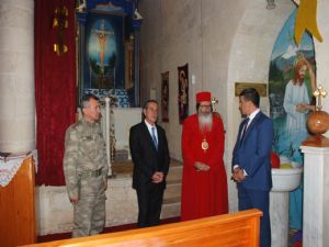 Mor Petrus ve Mor Pavlus Kilisesine gelişinde Vali Nurullah Naci Kalkancı'yı ve beraberindeki heyeti Süryani Bölge Metropoliti Mor Griğoryos Melki Ürek karşıladı.