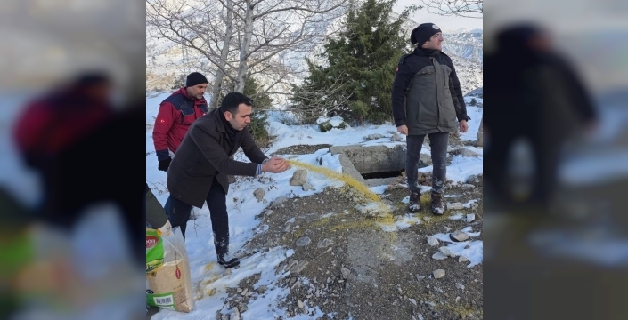 Yabani hayvanlar için doğaya yem bırakıldı