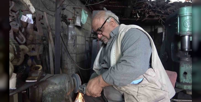 Adıyaman’da yaşayan Mustafa Uyan yarım asırdır sıcak demiri döverek tarım aletlerine dönüştürüyor.Adıyaman Demirciler Pazarı içerisinde y