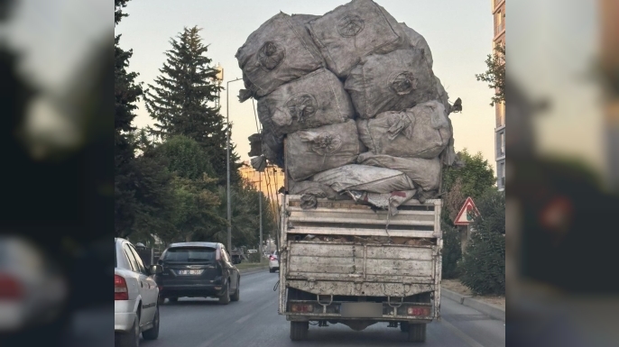 Adıyaman’ın şehir merkezinde görüntülenen ve kapasitesinin çok üzerinde yük taşıyan kamyonet, adeta seyir halindeki bir tehlike olarak kameralara yansıdı. Yol güvenliğini hiçe sayarak onlarca kiloluk çuvalları üst üste yükleyen sürücü, hem kendi hayatını hem de trafikteki diğer araç sürücülerinin canını riske attı.