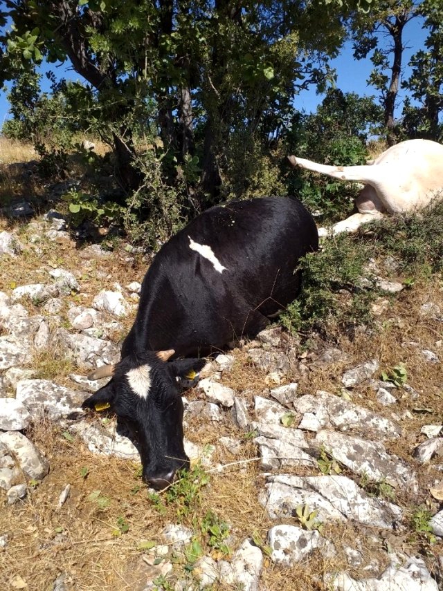 Yıldırımın düştüğünü fark ederek hayvanlarının yanına giden Bayındır, her iki ineğinin de yıldırım düşmesi sonucu telef olduğunu gördü.
